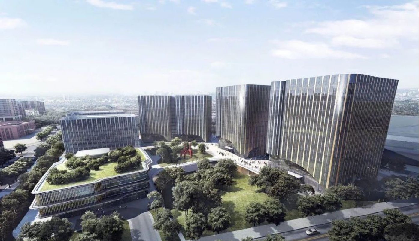 科技園項目一期總建筑面積約22.5萬平方米,包含6棟研發樓和2層地下車庫(地下共3層,一二期地下相互聯通),還設有下沉廣場和商鋪,敞亮的下沉廣場將所有建筑連在了一起。T6樓設置了戶外屋頂花園,特別鋪設